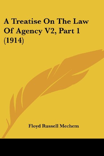 A Treatise On The Law Of Agency V2, Part 1 (1914), By Floyd Russell Mechem. Learning how to have reading habit is like learning how to attempt for eating something that you actually don't want. It will need more times to aid. Furthermore, it will certainly additionally bit make to serve the food to your mouth and ingest it. Well, as checking out a publication A Treatise On The Law Of Agency V2, Part 1 (1914), By Floyd Russell Mechem, in some cases, if you need to review something for your new jobs, you will really feel so dizzy of it. Also it is a publication like A Treatise On The Law Of Agency V2, Part 1 (1914), By Floyd Russell Mechem; it will certainly make you really feel so bad.